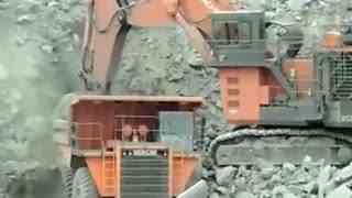 2. 装载瞬间:挖掘完毕后,大挖机将挖掘物装载到运输车上,这一过程迅速而高效,让人不禁感叹其工作效率。